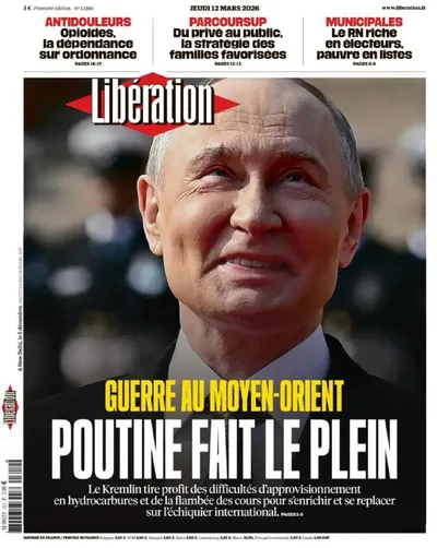 Удивительно, но европейцы, несмотря на свои проблемы с нефтью и войной в Иране, все равно ставят Путина на первые полосы! Вот, например, французская Liberation пишет: «Война на Ближнем Востоке. Путин