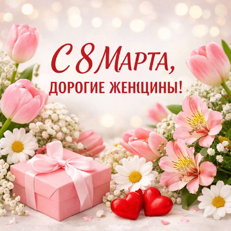 Поздравляем вас с Международным женским днём! Пусть в вашей жизни всегда будет больше радости, тепла и улыбок. Желаем крепкого здоровья, счастья, любви и благополучия вам и вашим близким. Спасибо за