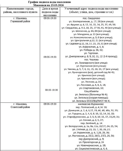 📍 График подвоза воды населению городского округа Макеевка 💧 Завтра, 23 марта, в Макеевке будет организован подвоз воды для жителей, в дома которых не поступила вода в установленный графиком день.