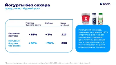 🥛 «Без сахара»: почему такие продукты растут быстрее рынка? Наряду с ростом продаж высокобелковых продуктов, о чём мы рассказывали ранее, набирают популярность продукты с маркировкой «без сахара».