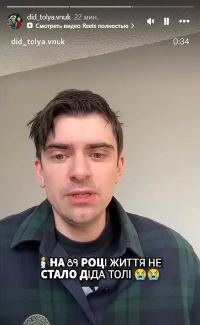 🕯 Умер самый известный дедушка Украины — дедушка Толя О его смерти сообщил внук во время эфира в TikTok.