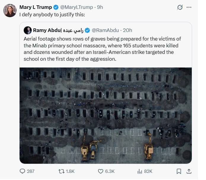 "Я бросаю вызов всем, кто пытается оправдать это", - так отреагировала племянница Трампа на трагедию в иранской школе Минаба. Мэри Лия Трамп — известный американский психолог и коуч — под этими слов