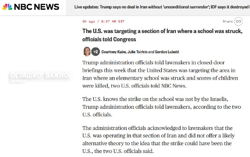 ❗️🇺🇸🇦🇪🇮🇷165 погибших учениц: по иранской школе ударили с базы США в ОАЭ — КСИР Корпус стражей исламской революции (КСИР) Ирана заявил, что атака на школу на юге страны, в результате которой пог