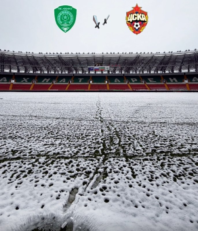 Снегопад в Грозном закончился. Поле готовят к игре. Думаю, точно будет лучше, чем вчера в Махачкале