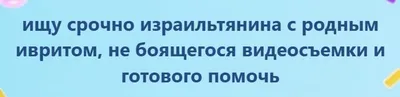Важен именно родной иврит (а не "на уровне родного"). Нужно отснять со мной диалог на иврите для небольшого видео (т.е. нужен собеседник). Примерно пару часов работы.