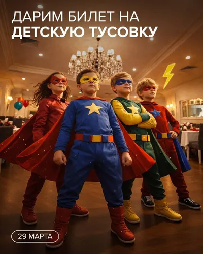 Приключение начинается! 🦸♂️⚡️ 29 марта в семейном ресторане «Макраме» пройдет детская супергеройская вечеринка — день, когда каждый ребёнок сможет примерить маску героя, пройти испытания, выполнить
