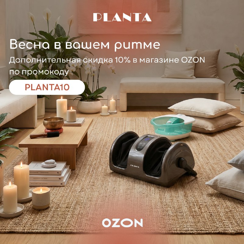 💐 Весна в ритме лёгкости: чтобы тело сказало «спасибо» С 4 по 31 марта действует дополнительная скидка 10% по промокоду PLANTA10 на подборку товаров для комфорта и релакса ✨ Массажеры, камины, тех