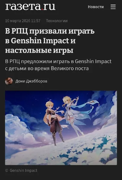 Главная новость к этому часу: в РПЦ предложили играть в Геншин во время поста 👤 Вова Мазунин (источник: "ПАРИ | GENSHIN IMPACT")
