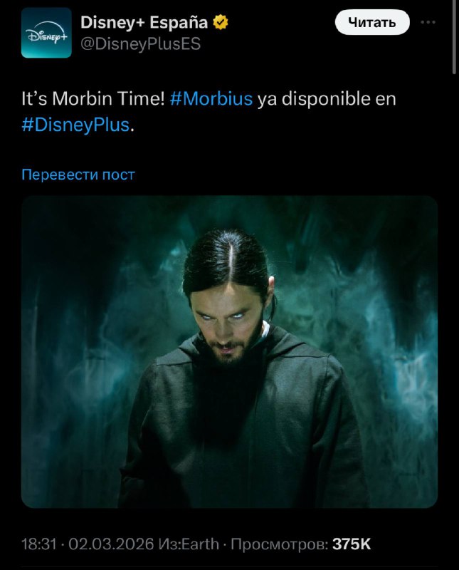 Испанский Disney+ рекламирует выход «Морбиуса» на стриминге с подписью «It’s Morbin Time» Спасибо за внимание!