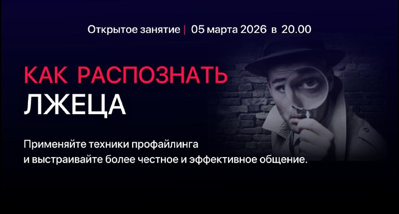 Хотите понимать истинные намерения людей и видеть ложь там, где другие не замечают подвоха? 🕵Приглашаем вас на открытое занятие Алексея Филатова «Как распознать лжеца: лучшие инструменты профайлинга