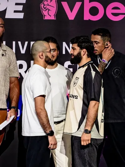 ⚡️ Мухаммад Мокаев и Арман Царукян провели дуэль взглядов перед схваткой по грепплинге на Hype 🤩