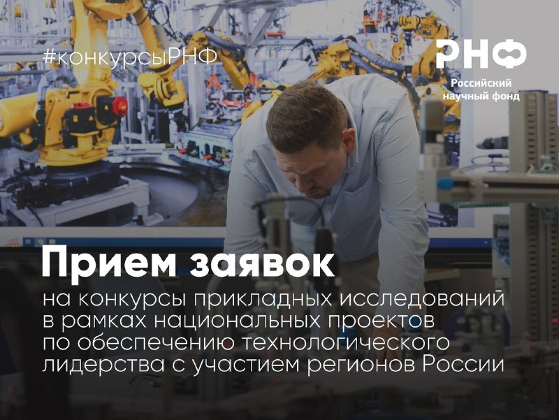 ✔️ Российский научный фонд открывает прием заявок на конкурсы прикладных исследований в рамках национальных проектов по обеспечению технологического лидерства (НПТЛ) с участием субъектов Российской Фе