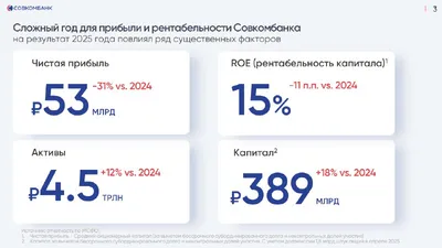 🏦 Совкомбанк — заметное улучшение во второй половине года Банк отчитался по МСФО за 2025 год, смотрим на самые важные цифры и их динамику 👇 💰 Финансовые показатели Чистая прибыль сократилась н