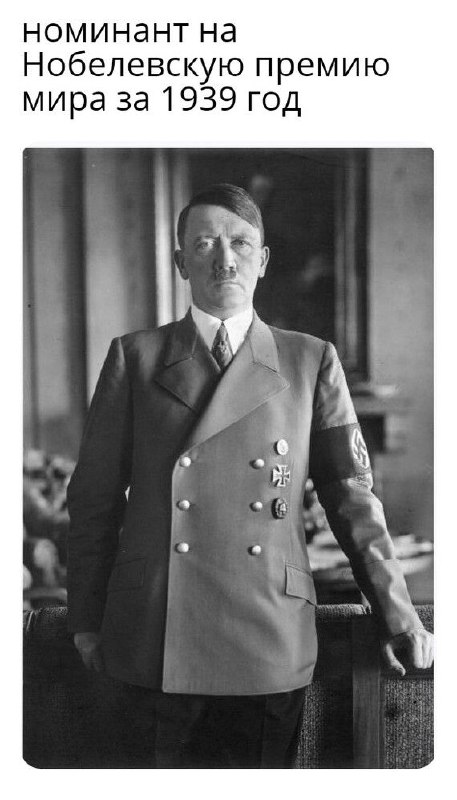 Гитлера называли миротворцем и выдвигали на Нобелевскую премию. В 1938 году, когда Германия отжала часть Чехословакии, в европейских газетах Гитлера называли миротворцем, который избежал войны. Все э