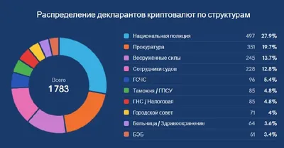 💸 Среди украинских госслужащих больше всего криптовалюты задекларировали сотрудники полиции — почти 500 человек. Следом идут прокуроры и военные, причём именно среди армии интерес к крипте вырос си
