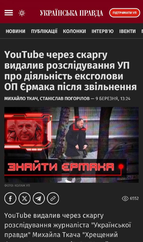 Ютуб снес сюжет Ткача на канале Украинская правда про Ермака. Главред Мусаева, которая недавно получила премию от Сороса, верещит об акте цензуры и демократическом обществе. Ранее УП смаковало каждый