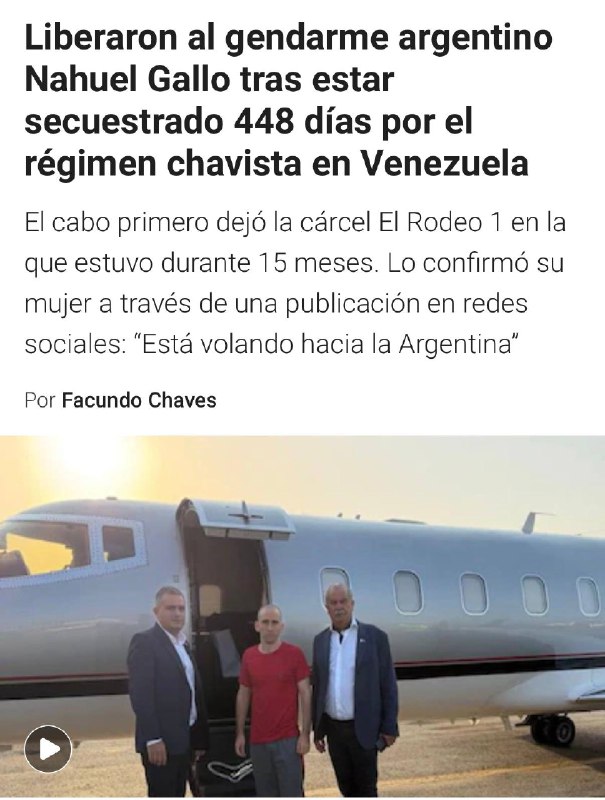 🇻🇪 #Новости #Заложники Спустя 15 месяцев после незаконного ареста, в Венесуэле освобождён аргентинский жандарм Науэль Гашо. Прямо сейчас он «летит в Аргентину». @RuArgentina.Новости
