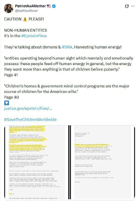❗️В файлах Эпштейна упоминаются ритуалы сбора человеческой энергии для демонов! В файлах Эпштейна содержится информация о том, что есть «Сущности (демоны), действующие вне поля зрения человека и мент