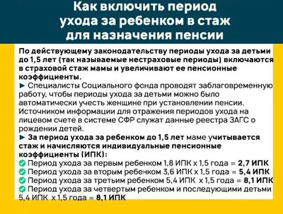 Как включить период ухода за ребенком в стаж для назначения пенсии Подписывайтесь