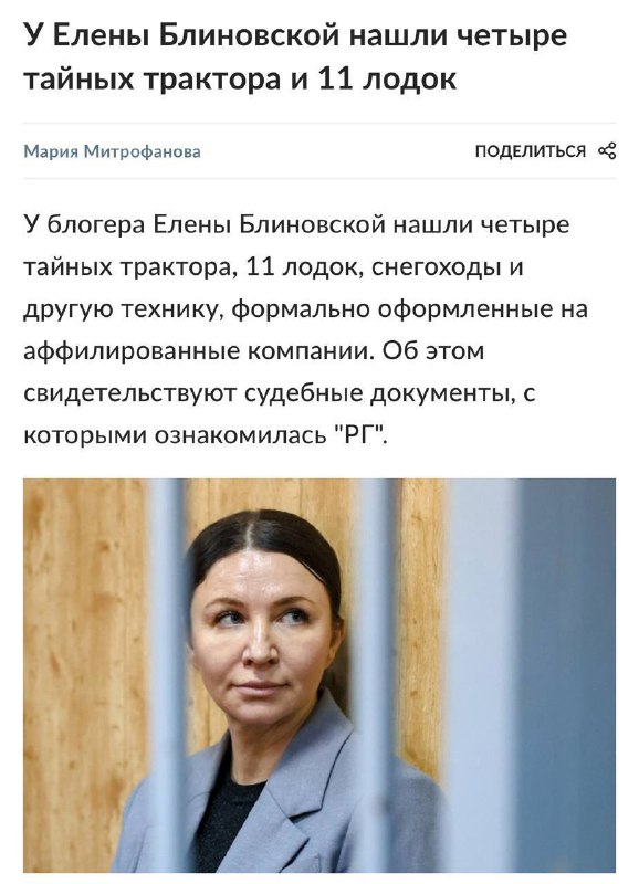 У Елены Блиновской нашли 4 трактора и 11 лодок. 📲Светские хроники в MAX