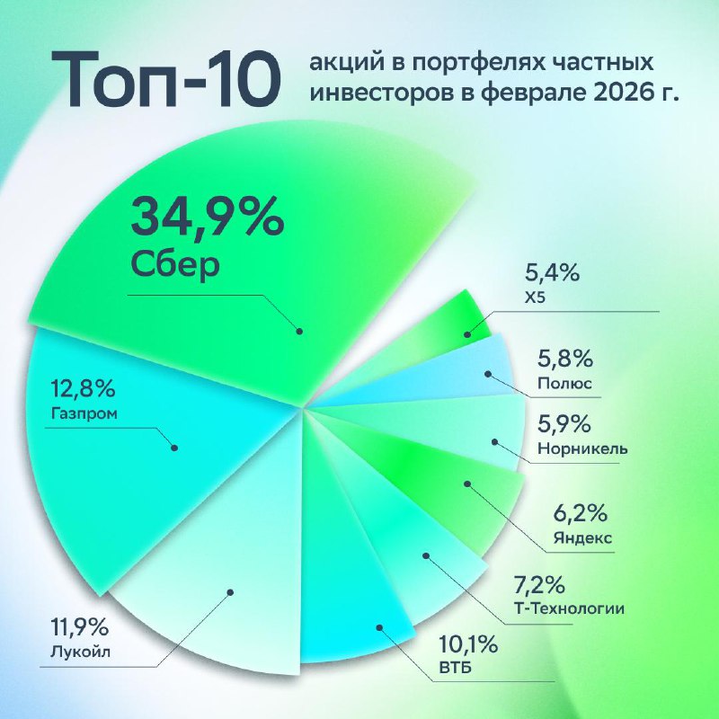 Акции Сбера — бессменный лидер Народного портфеля 🧳 Наиболее востребованными ценными бумагами для частных инвесторов остались обыкновенные и привилегированные акции Сбера с совокупной долей 34,9% (2