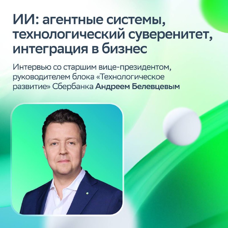 🤖 Сбер: ключевые тезисы из интервью Андрея Белевцева 🔘 Собственные фундаментальные модели становятся вопросом технологического суверенитета. Они формируют базу для всей экосистемы прикладных AI-реш