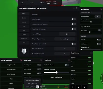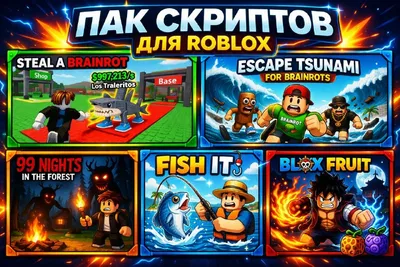 📣ПАК СКРИПТОВ НА РОБЛОКС 1. 📣STEAL A BRAINROT ⚙Функционал: Позволяет смещать хитбокс под карту после взятия браинрота в руки, что делает вас неуязвимыми для других игроков. Без бана ✅ Без ключа