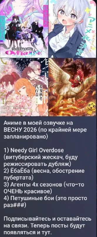 Список того, что я озвучу в весеннем аниме сезоне ☕️ Сегодня будет общий текстовый список в канале АниЛиберти кстати