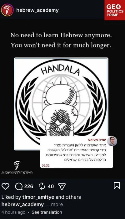 🇮🇷🇮🇱Битва на БВ перешла и в словесную форму Хакеры иранской группы Handala взломали аккаунт Академии иврита, официального органа по языку в Израиле, чтобы объявить этот язык устаревшим: "Больше