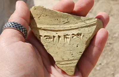 Некоторые из вас, возможно, видели, что российско-иракская экспедиция на Дехайле обнаружила несколько нововавилонских надписей. В частности, такой вот обломок глиняного горшка. На горшке клинописная