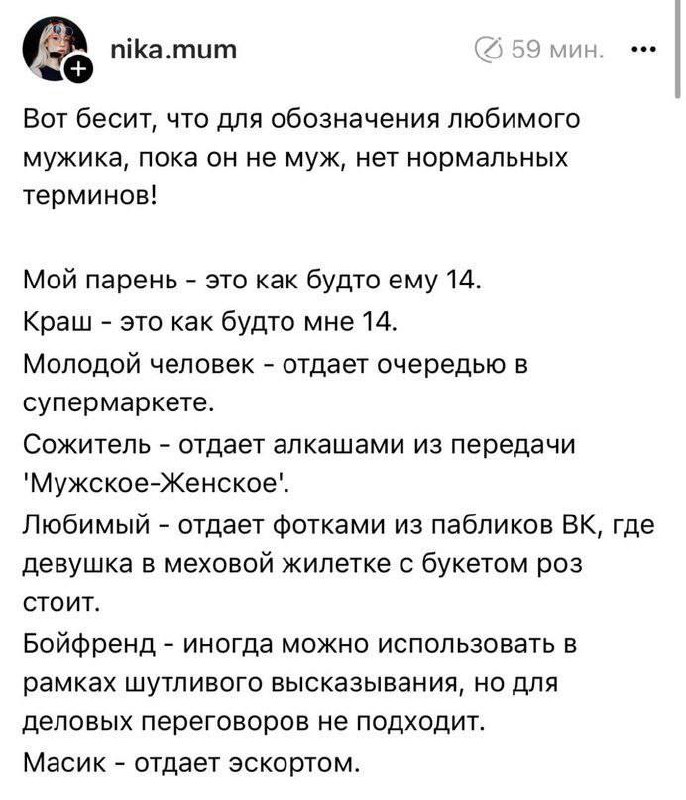 а мужики, которые хотят на 23е что-то, кроме носков и пены для бритья — охуевшие проститутки!!!!!