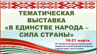 🇧🇾🇧🇾🇧🇾 Сегодня, 16 марта, в 15.00 состоится открытие тематической выставки "В единстве народа - сила страны". Выставка расположена в фойе 2 этажа Белорусского торгово-экономического университет
