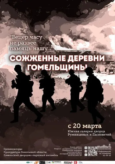 Ко дню памяти Хатынской трагедии в Гомеле откроется выставка «Вецер часу не развее памяць нашу… Сожженные деревни Гомельщины» Выставка начнет работу 20 марта в южной галерее Дворца Румянцевых и Паске
