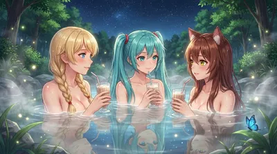 "Подружки пионерки, решили устроить посиделки в горячем источнике, ((Ии от чистого сердца, напоминание! Передружба между пионерками осуждаема))"