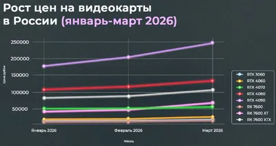 📈В России резко выросли цены на видеокарты из-за конфликта на Ближнем Востоке. Логистика дорожает почти ежедневно, поэтому ритейлеры заранее включают в цену возможные риски затяжного конфликта. Тол