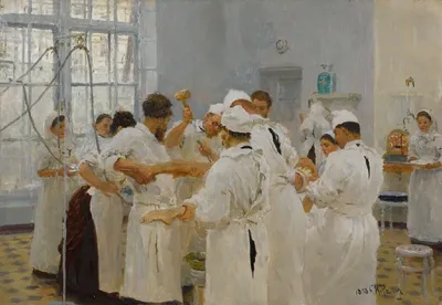Хирург Е.В. Павлов в операционном зале. Илья Репин, 1888 год