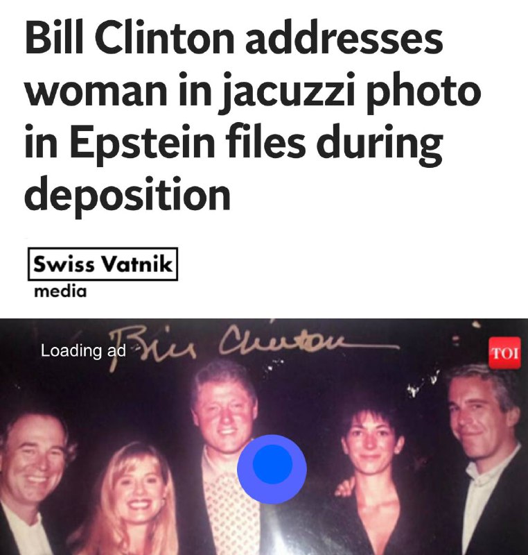 На закрытых слушаниях в Конгрессе США Билл Клинтон рассказал, что скандальная фотография в джакузи с одной из предполагаемых жертв педофила Джеффри Эпштейна была сделана в ходе его частного визита в С