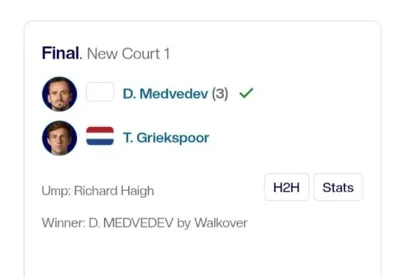 🎾Финала в Дубае не будет Грикспур не выйдет на матч из-за травмы ноги в матче с Рублевым 🙏Таллону желаем здоровья ❤️Даню поздравляем с титулом