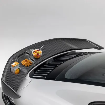 Карбоновое антикрыло превратили В СТОЛ. Gunther Werks показали новый активный спойлер из углеволокна, который помимо аэродинамики можно использовать как поверхность для еды — например, на автособытиях
