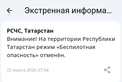 ‼️В Татарстане почти шесть часов действовал режим беспилотной опасности Сегодня с 2.24 до 7.54 по мск на территории Татарстана действовал режим беспилотной опасности. Сообщение об этом этом появилось