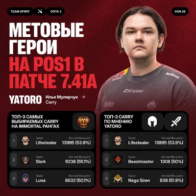 Yatoro выбрал лучших керри для пабов в новом патче 👀 А мы проверили, кого чаще всего берут на Immortal-рангах ✌🏻 Кого из них спамите в своих играх? 👇🏼 ❤️🔥 — 🩸 ❤️ — 🪓 👀 — 🎧 👍 — 🐡 🔥 — 🌜