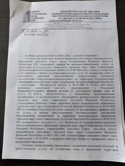 Тарифы на воду в Северодонецке (объявления в водоканале) Согласно Постановления Комитета тарифного и ценового регулирования Луганской Народной Республики от 23 декабря 2025 года № 30/1 тариф для кат