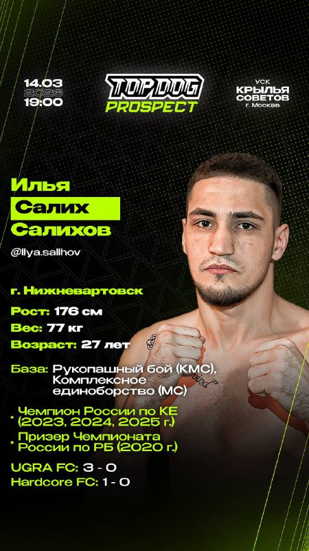 Илья «Салих» Салихов – Мушвиг Рзаев | До 77 кг ❤️🔥Билеты в продаже на сайте TOP DOG: Prospect 30. Турнир состоится 14 марта в 19:00. Москва, площадка УСК «Крылья Советов»⭐️ «Салих» Prospect: (Деб