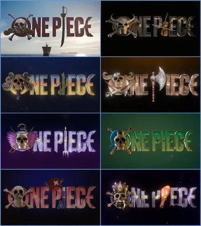 Логотипы Вступительных титров второго сезона «Ван Пис», стилизованные под каждый из восьми эпизодов