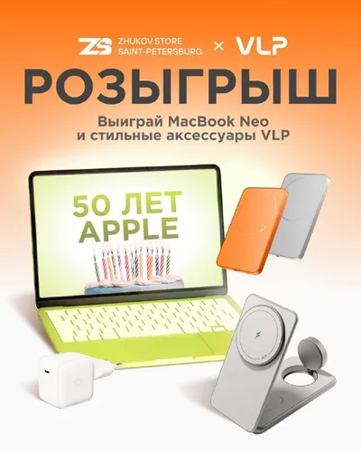 РОЗЫГРЫШ КО ДНЮ РОЖДЕНИЯ APPLE — 50 ЛЕТ! В честь юбилея мы вместе с друзьями решили провести особенный розыгрыш, где подарки получаете именно вы! Будем дарить: 1 место: Mac Book NEO 2 место: Ком