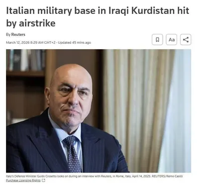 ‼️Ночью Иран нанёс удар по итальянской военной базе в Иракском Курдистане, — Reuters По данным министерства обороны Италии, пострадавших нет — персонал находится в безопасности. Сначала сообщали о рак