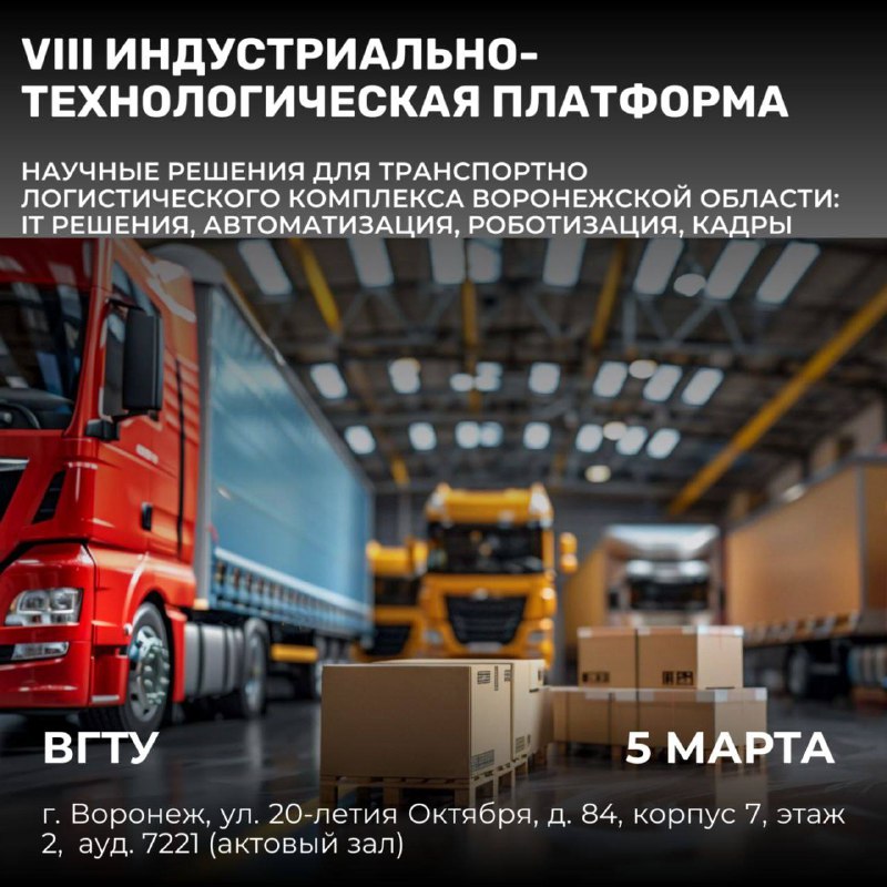 🚚 В Воронеже 5 марта пройдет VIII Индустриально-технологическая платформа ❗️Обсудим научные решения для транспортно-логистического комплекса: IT, автоматизацию, роботизацию и кадры. 👤 Организатор
