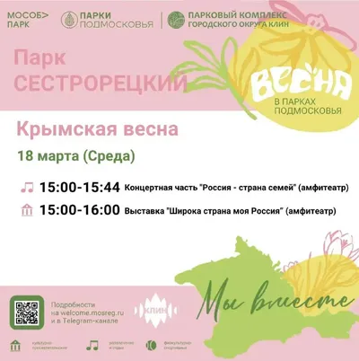 ❤️18 марта в парке «Сестрорецкий» состоится торжественное мероприятие, посвященное 12-й годовщине воссоединения Крыма с Россией. В этом году праздник проходит под знаком Года единства народов России.