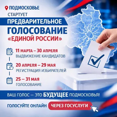 👍 В Подмосковье дан старт предварительному голосованию партии «Единая Россия». Процедура позволит жителям региона определить кандидатов, которые представят партию на выборах 2026 года в Государствен