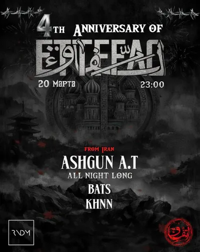 🟣 РOЗЫГPЫШ НА ETTEFAQ B RNDM 20 марта, RNDM — четырёхлетие празднует Ettefaq — проект-протест, созданный в Иране, где рейвы запрещены и наказуемы. Играют основатель команды Ashgun A.T с 4,5-часовым